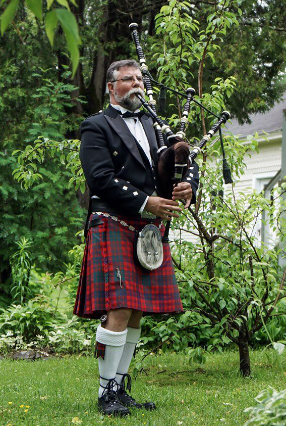 Il aura toujours le kilt accompagné de façon « d’époque » avec chemise médiéval et chapeau Balmoral.